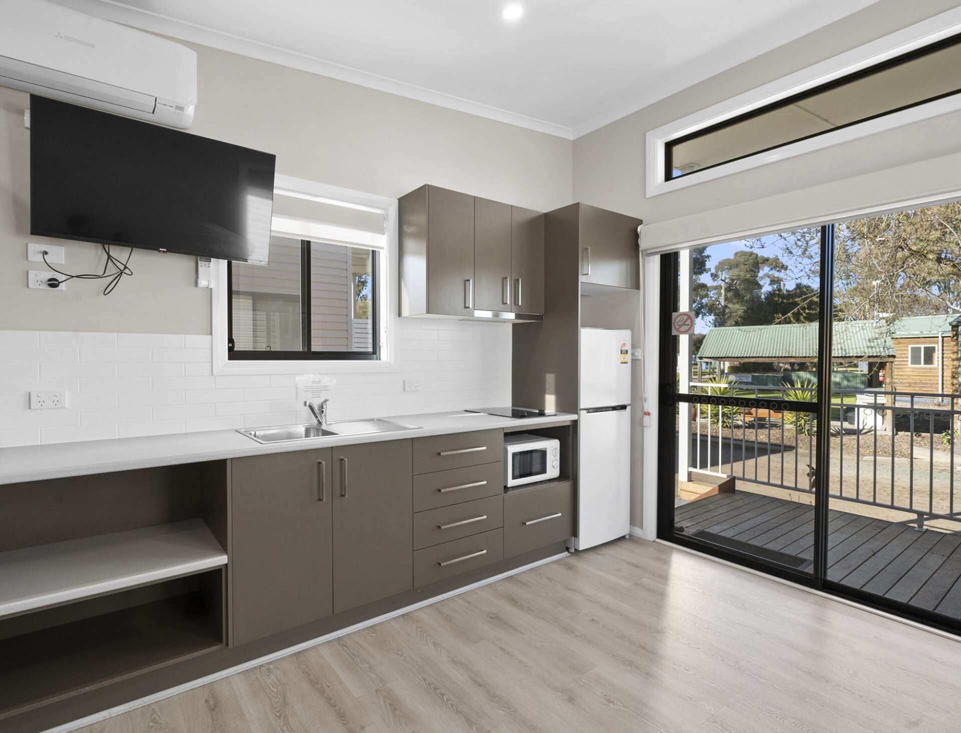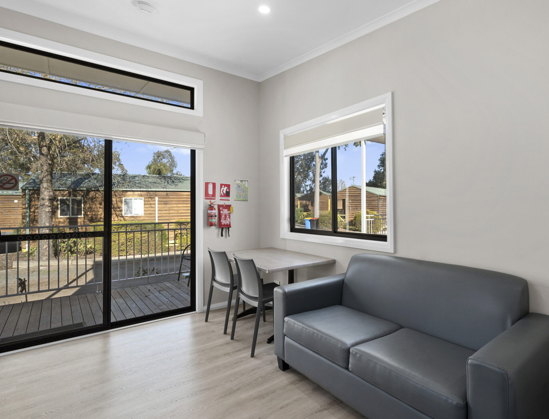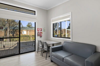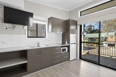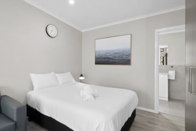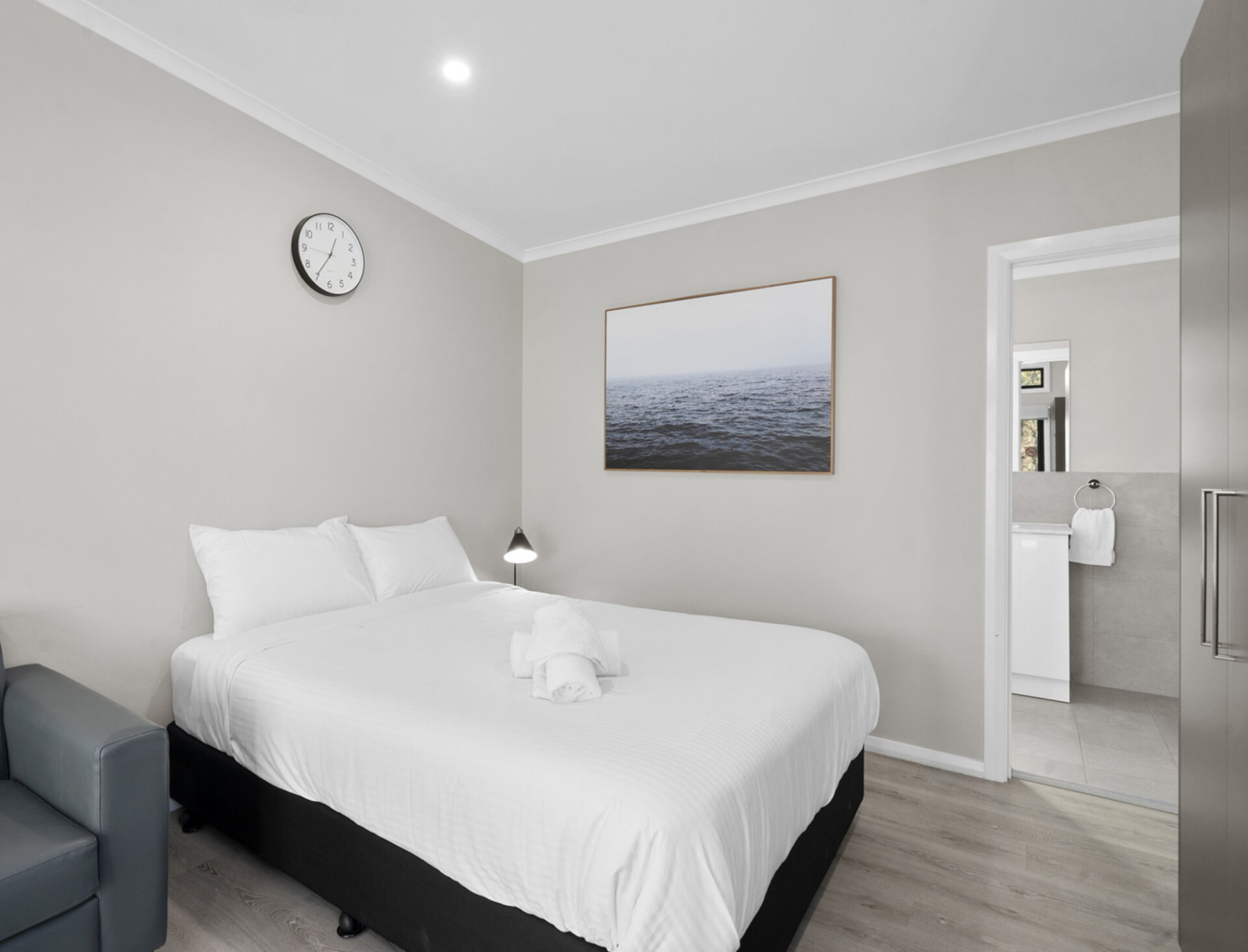 Ideal for couples or solo travellers, this modern studio sleeps two and features a queen bed, reverse cycle air conditioning, and a private ensuite. Enjoy a kitchenette with electric cooktop, microwave, and full-size fridge, plus a small balcony for outdoor relaxation. Parking is included for added convenience.