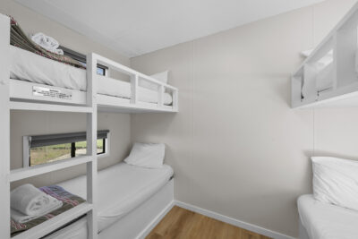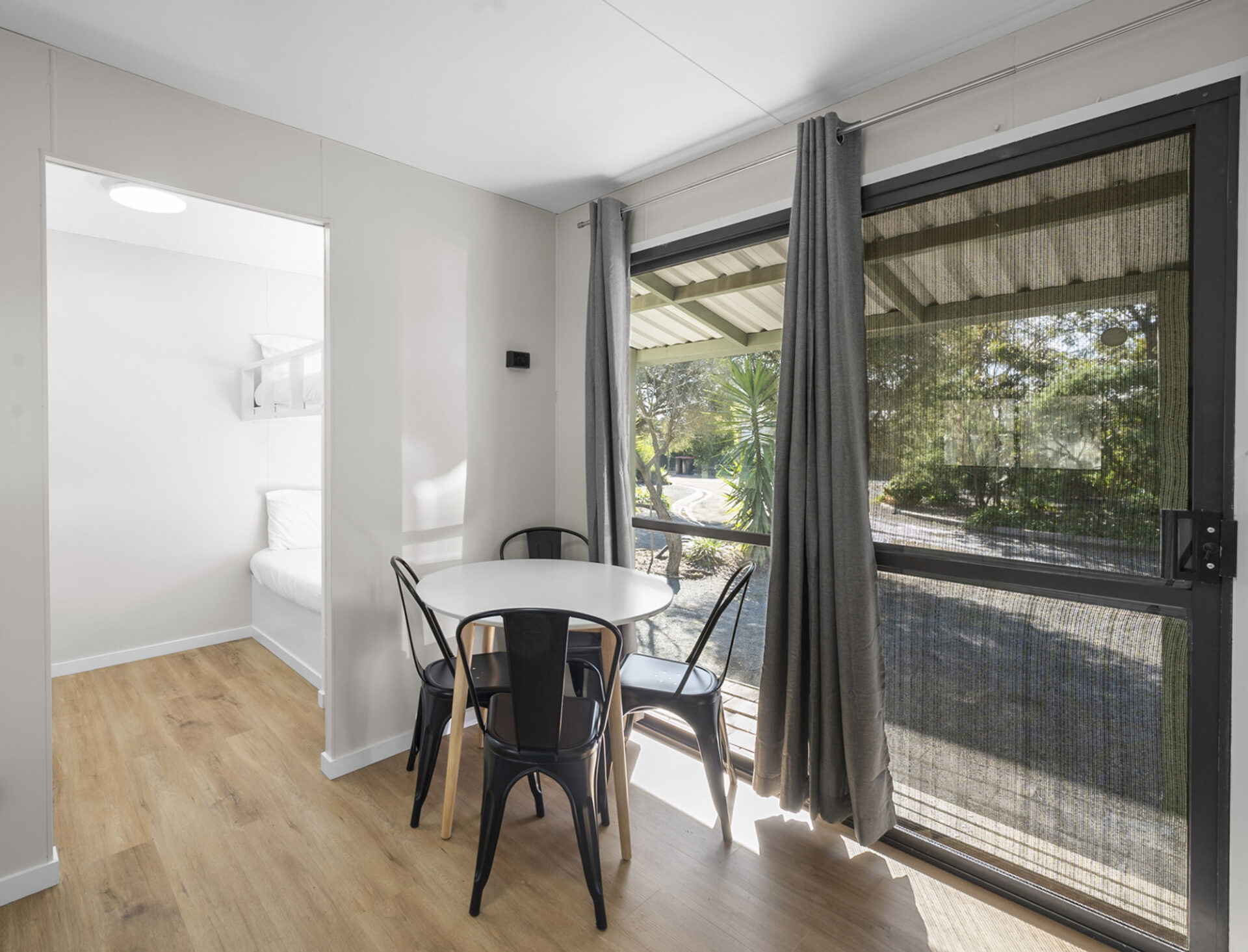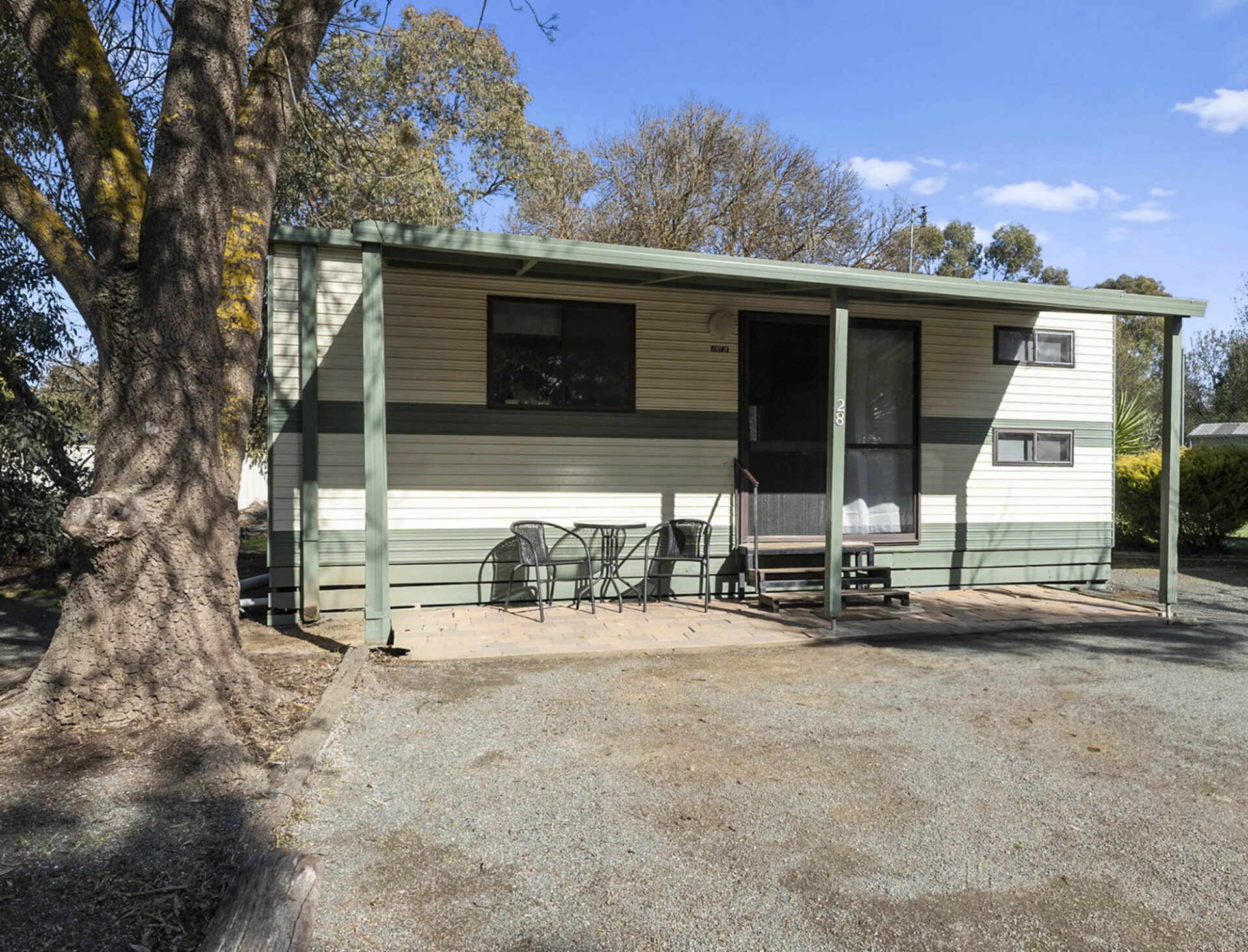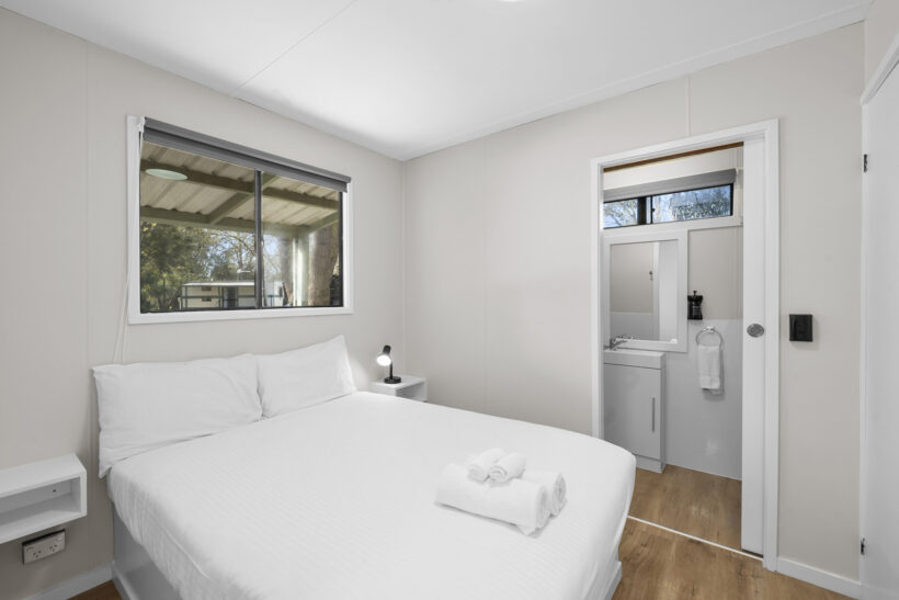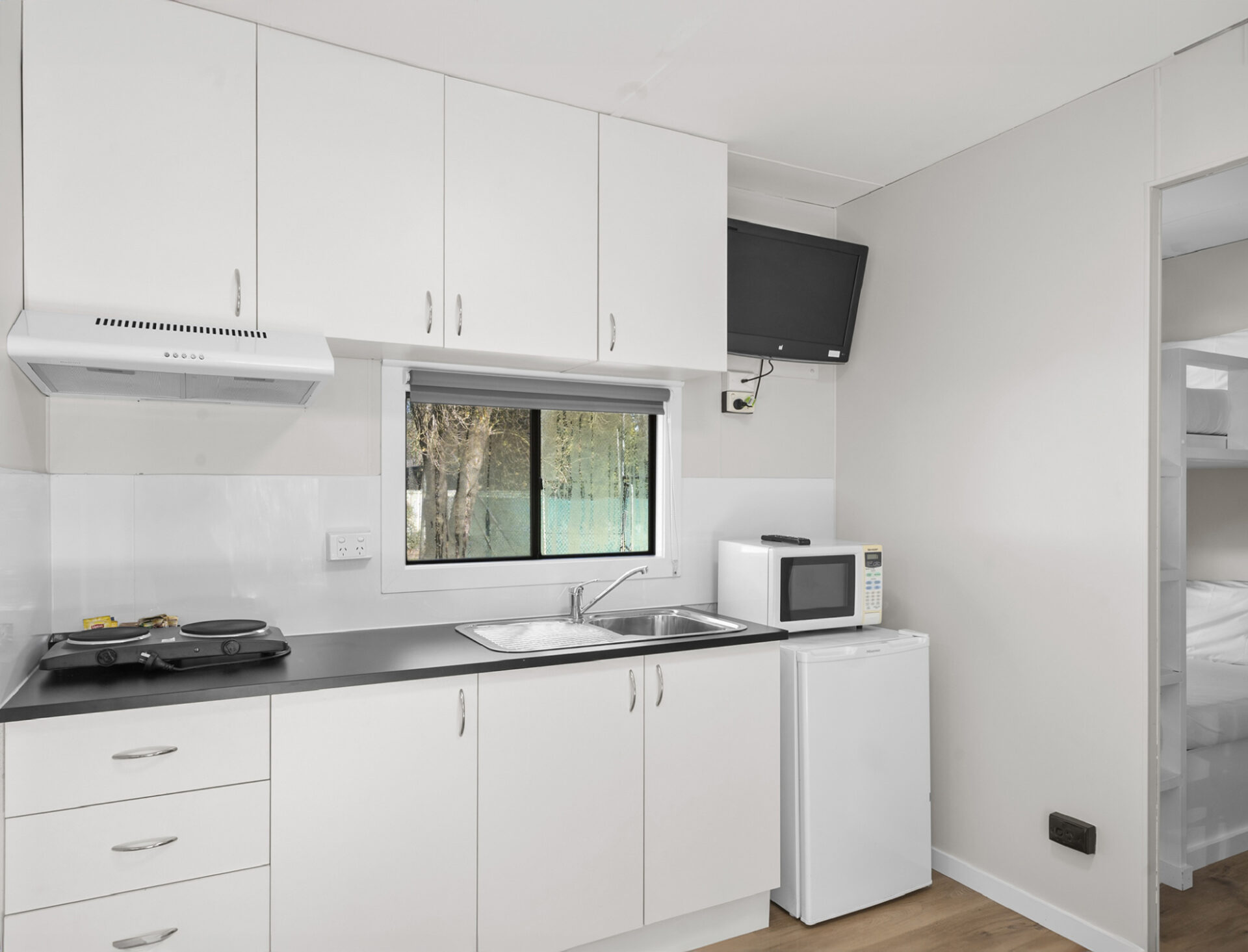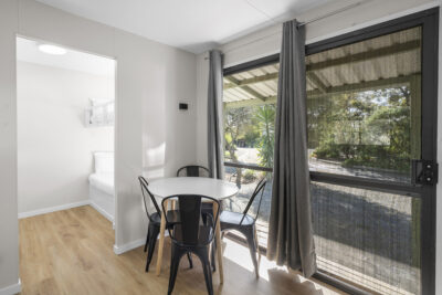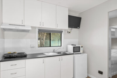 Great for families, this cabin sleeps up to six with a double bed and two sets of bunk beds. It includes reverse cycle air conditioning, a TV, and a kitchenette with electric cooktop, microwave, and bar fridge. A practical and comfortable base for your stay in Shepparton. Note: Bunk beds are best suited to children and may not comfortably accommodate adults.